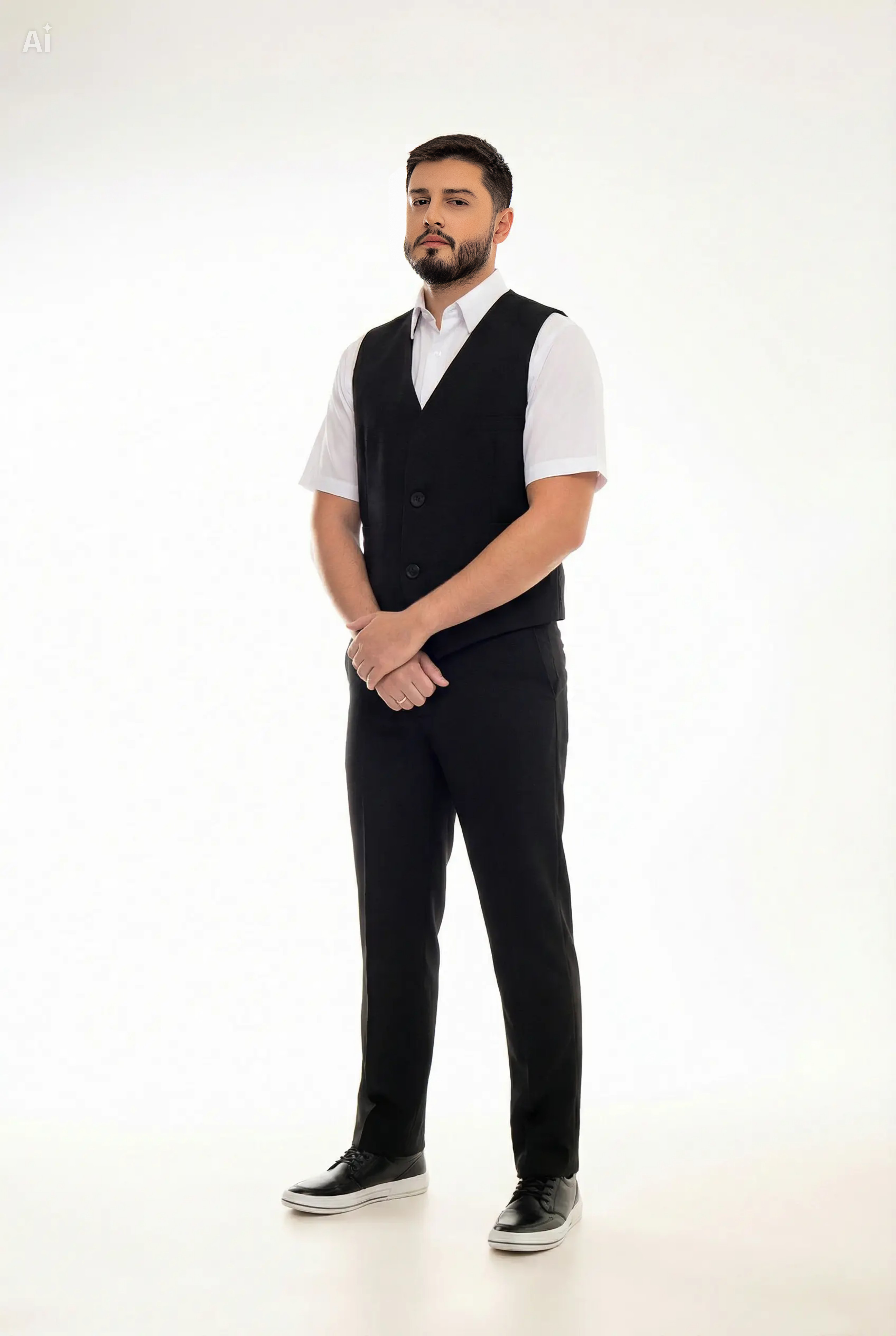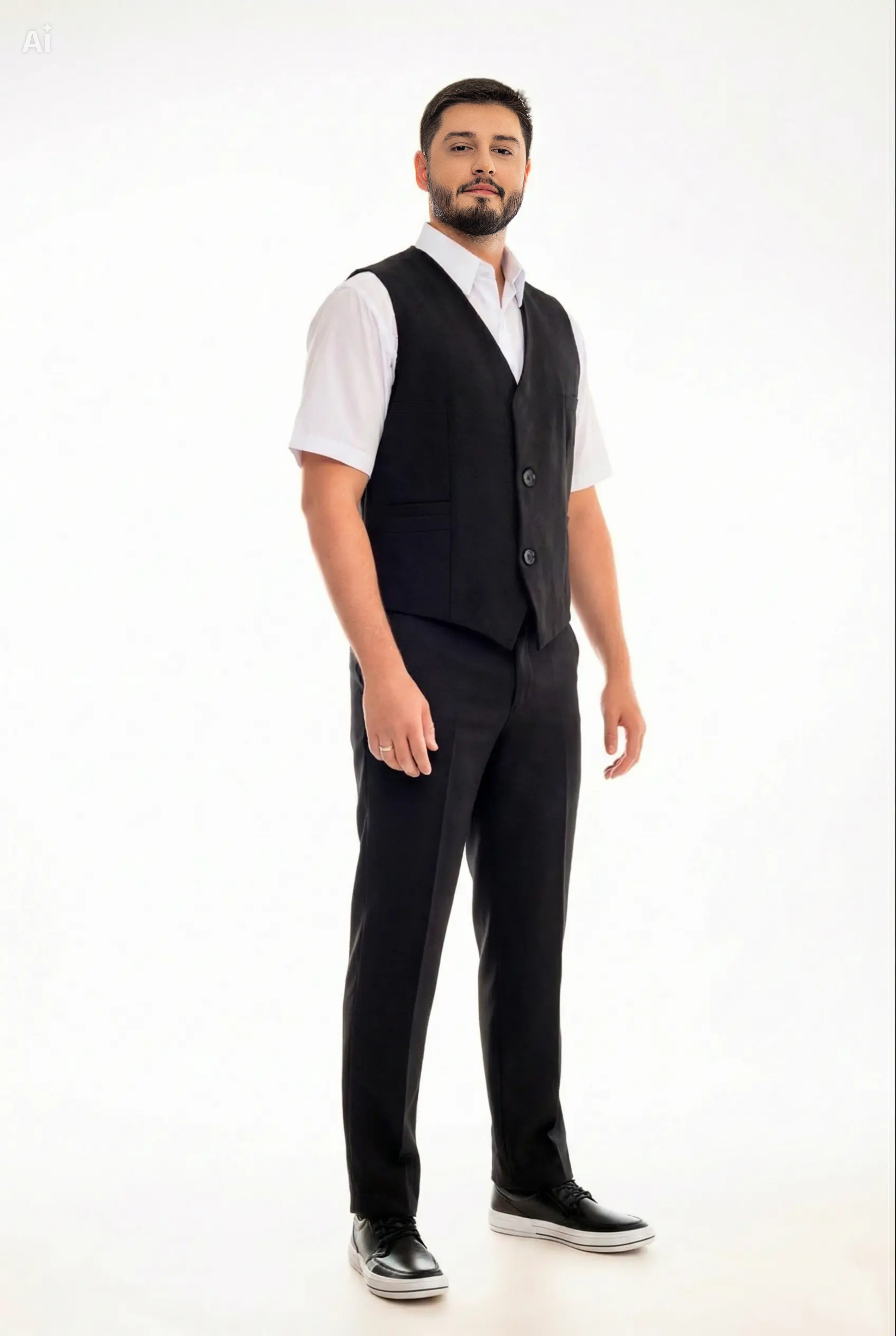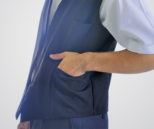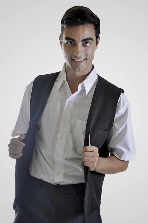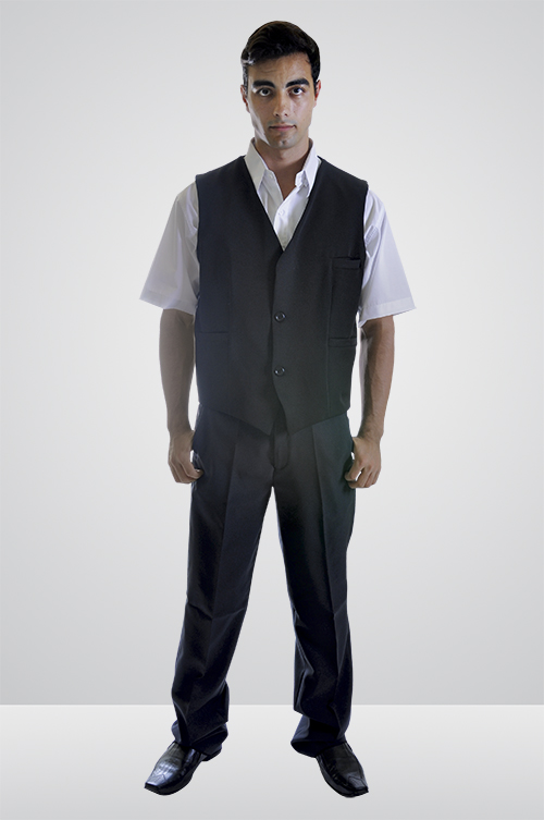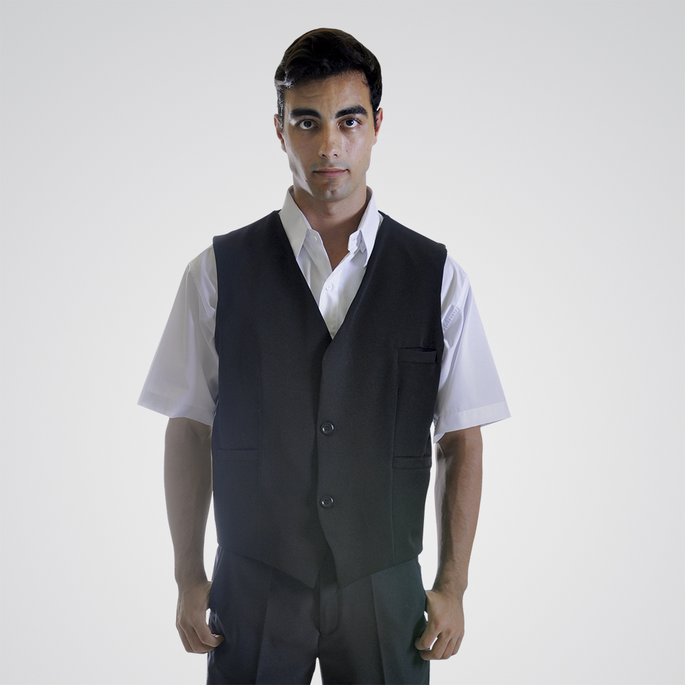 Produto clássico, muito utilizado em restaurantes pizarias ou mesmo recepções, ideal para sobrepor camisas sociais, podendo ser combinado seu uso com gravatas. Seus bolsos inferiores podem guardar blocos de anotações, canetas, etc.