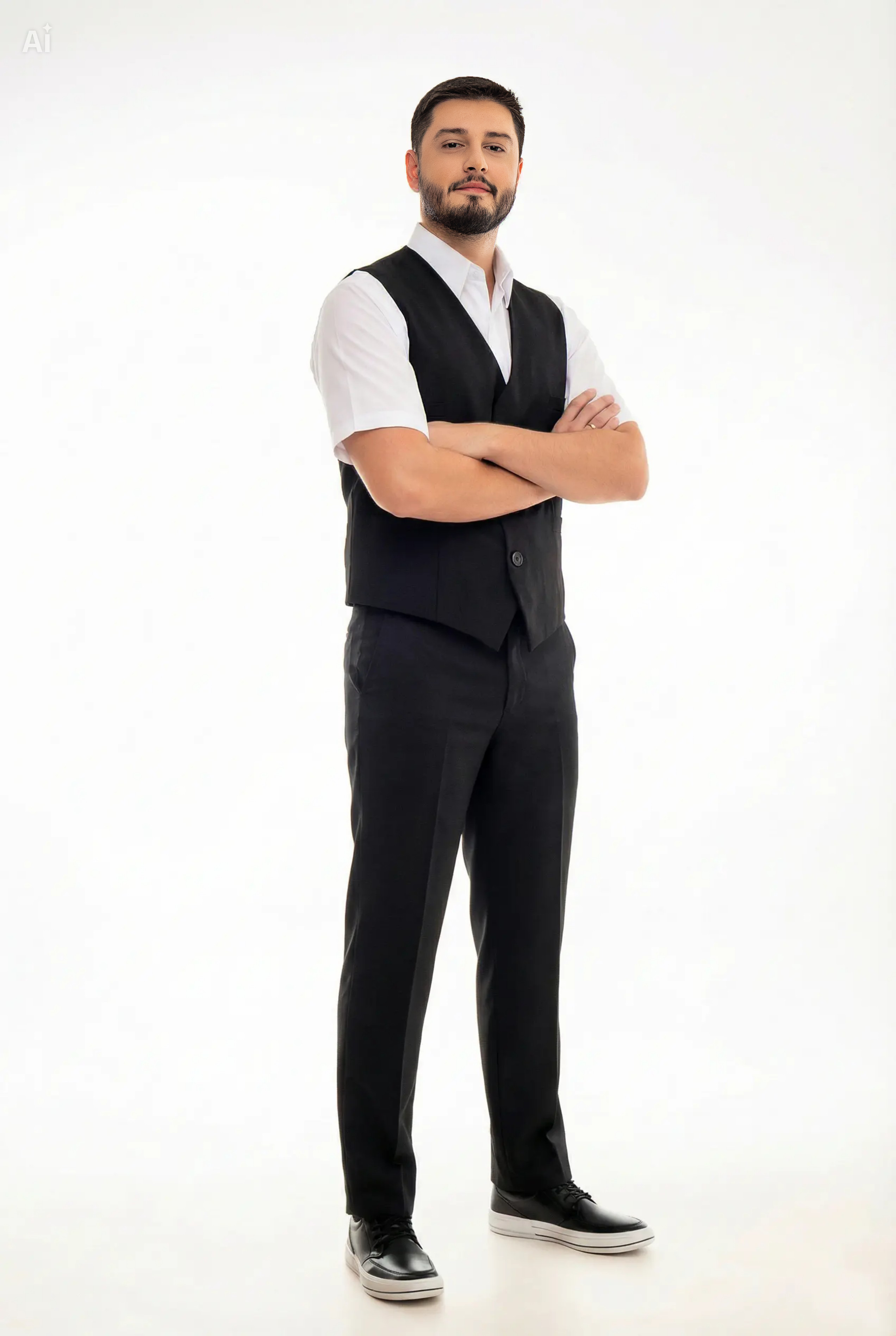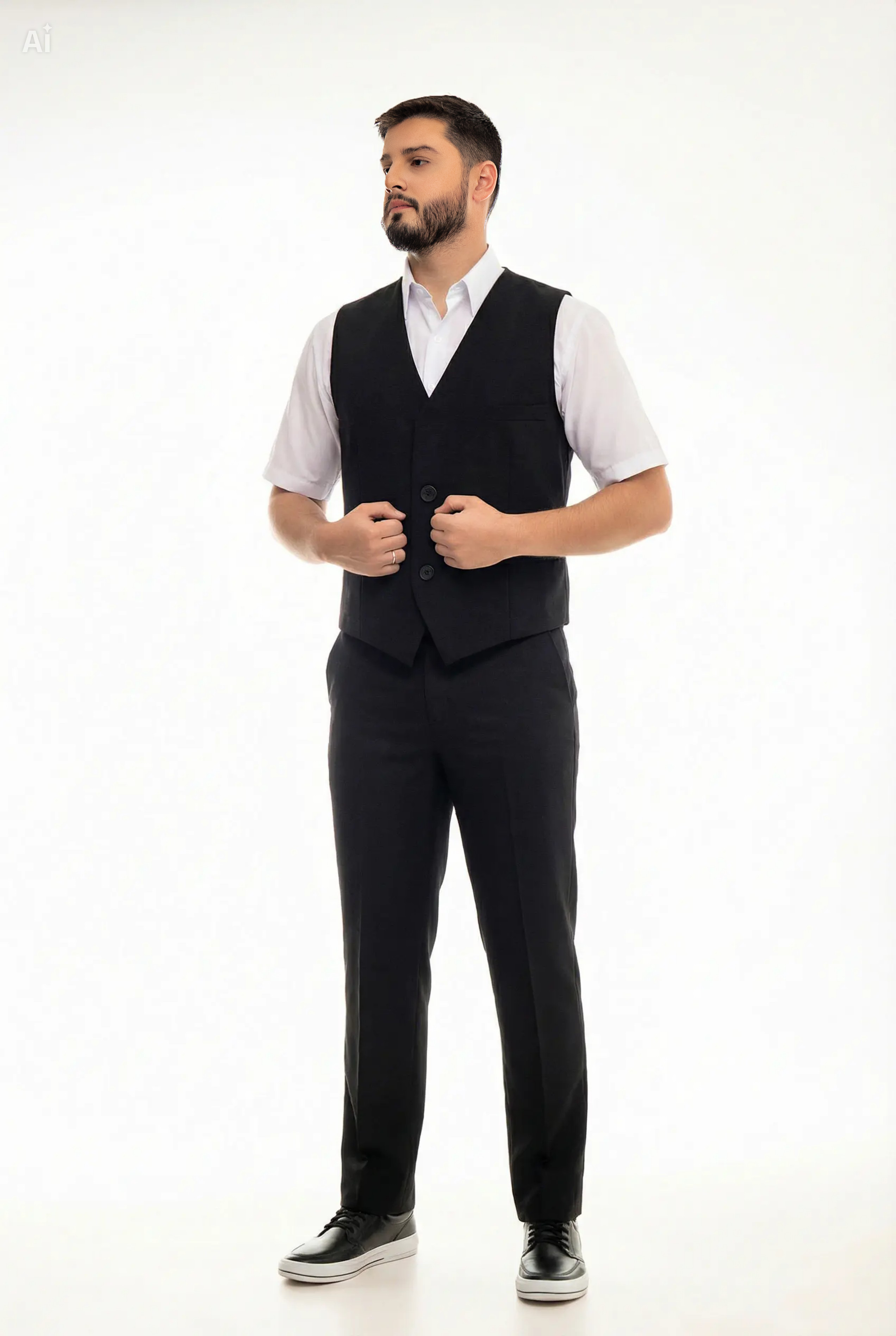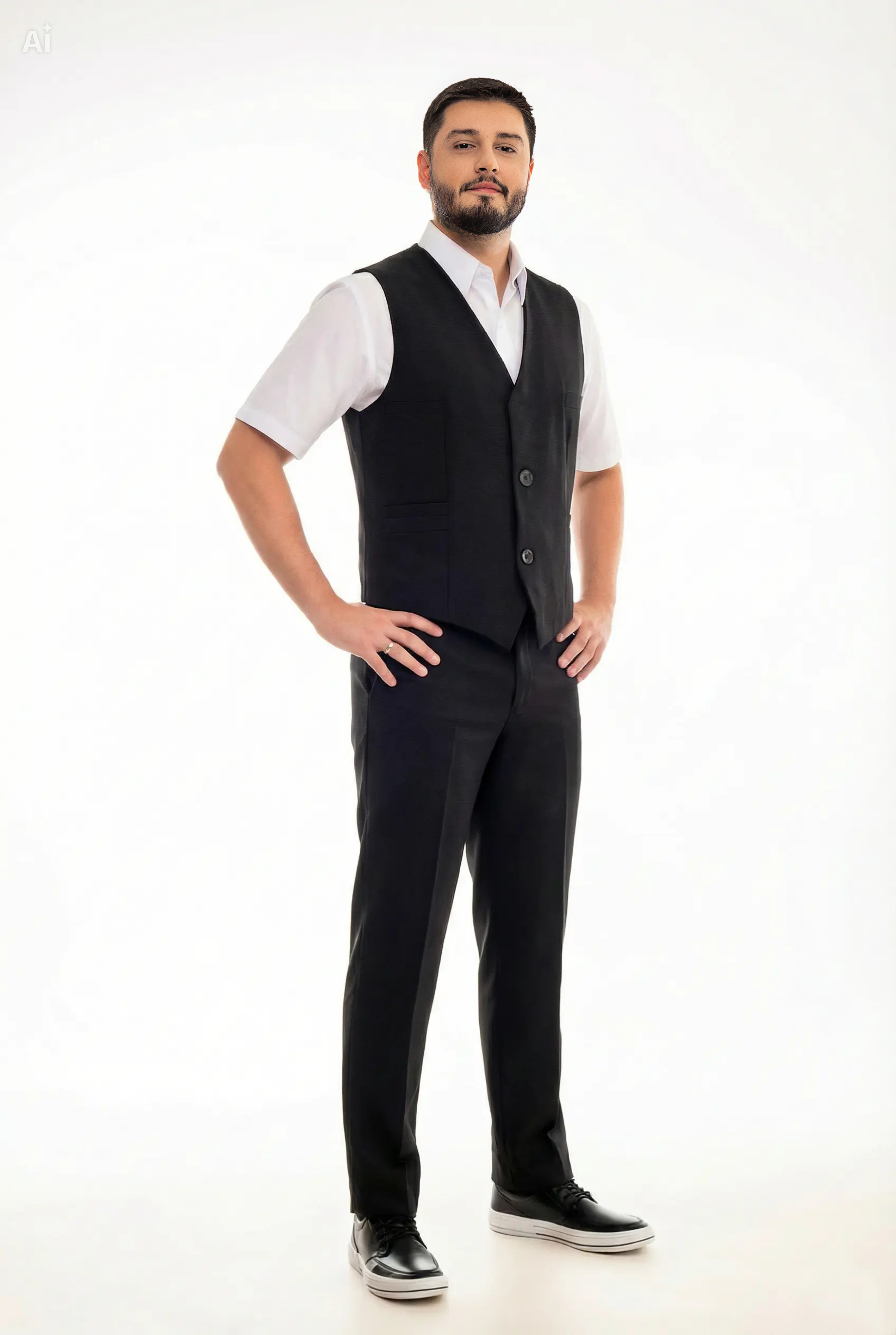 Produto clássico, muito utilizado em restaurantes pizarias ou mesmo recepções, ideal para sobrepor camisas sociais, podendo ser combinado seu uso com gravatas. Seus bolsos inferiores podem guardar blocos de anotações, canetas, etc.