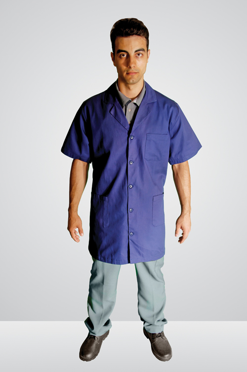 Como opcionais esta peça pode receber proteção frontal para os botões, fenda traseira nas costas, gola colorida e detalhes coloridos nas lapelas dos bolsos. Esta versão é destinada para uso Unissex.
