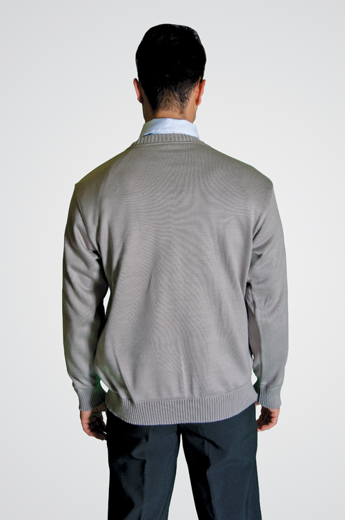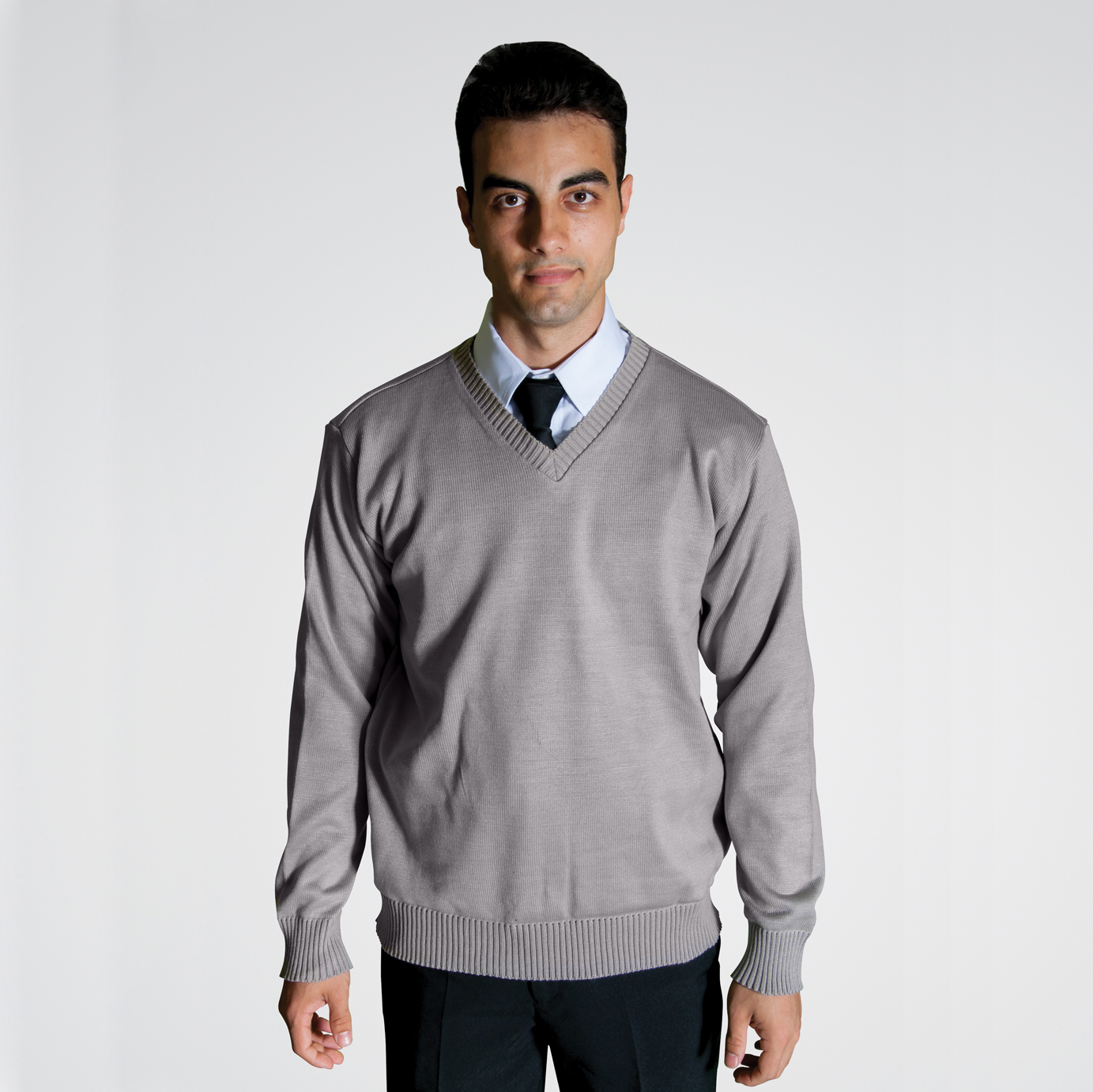 Fabricado em malha retilínea, tipo tricot, com possibilidade de gola em V ou gola Redonda, possui a gola punhos e barras remalhados, sendo a barra e punho com reforço de elástico na trama para evitar esgarçamento.